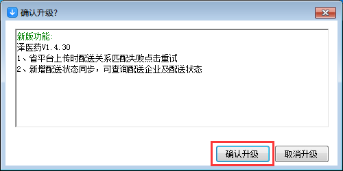 【確認(rèn)升級(jí)?】提示窗口,對(duì)當(dāng)前版本升級(jí)內(nèi)容的簡要說明;點(diǎn)擊【確認(rèn)升級(jí)】繼續(xù);