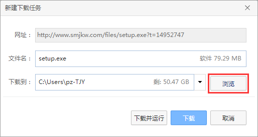 點(diǎn)擊【瀏覽】按鈕,將安裝包保存在指定位置,便于查找;